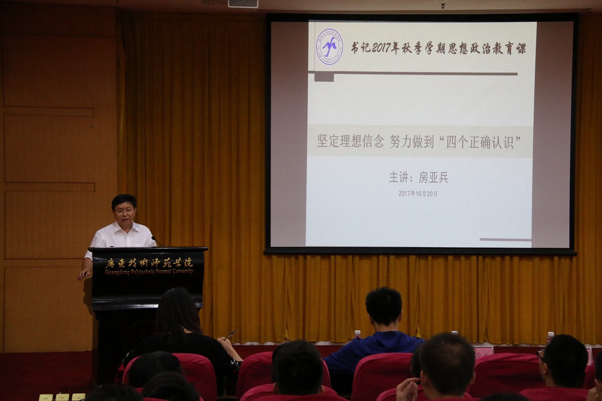 2017年10月20日在校本部第一教學(xué)樓208室,學(xué)院黨總支房亞兵書記給學(xué)生干部和學(xué)生代表,作了題為《堅(jiān)定理想信念,努力做到“四個(gè)正確認(rèn)識(shí)”》的2017年書記秋季學(xué)期思想政治教育課。他以典型的歷史資料為例,首先對(duì)理想信念的深刻內(nèi)涵進(jìn)行了深入講解,認(rèn)為當(dāng)代大學(xué)生應(yīng)把實(shí)現(xiàn)社會(huì)主義核心價(jià)值觀培養(yǎng)成自己的理想信念。同時(shí),結(jié)合學(xué)習(xí)黨的十九大和全國高校思想政治工作會(huì)議精神,對(duì)大學(xué)生如何做到正確認(rèn)識(shí)世界和中國發(fā)展大勢(shì)、如何做到正確認(rèn)識(shí)中國特色和國際比較、如何做到正確認(rèn)識(shí)時(shí)代責(zé)任和歷史使命、如何做到正確認(rèn)識(shí)遠(yuǎn)大抱負(fù)和腳踏實(shí)地等問題進(jìn)行了深入闡述。(美獅貴賓官方網(wǎng)站)