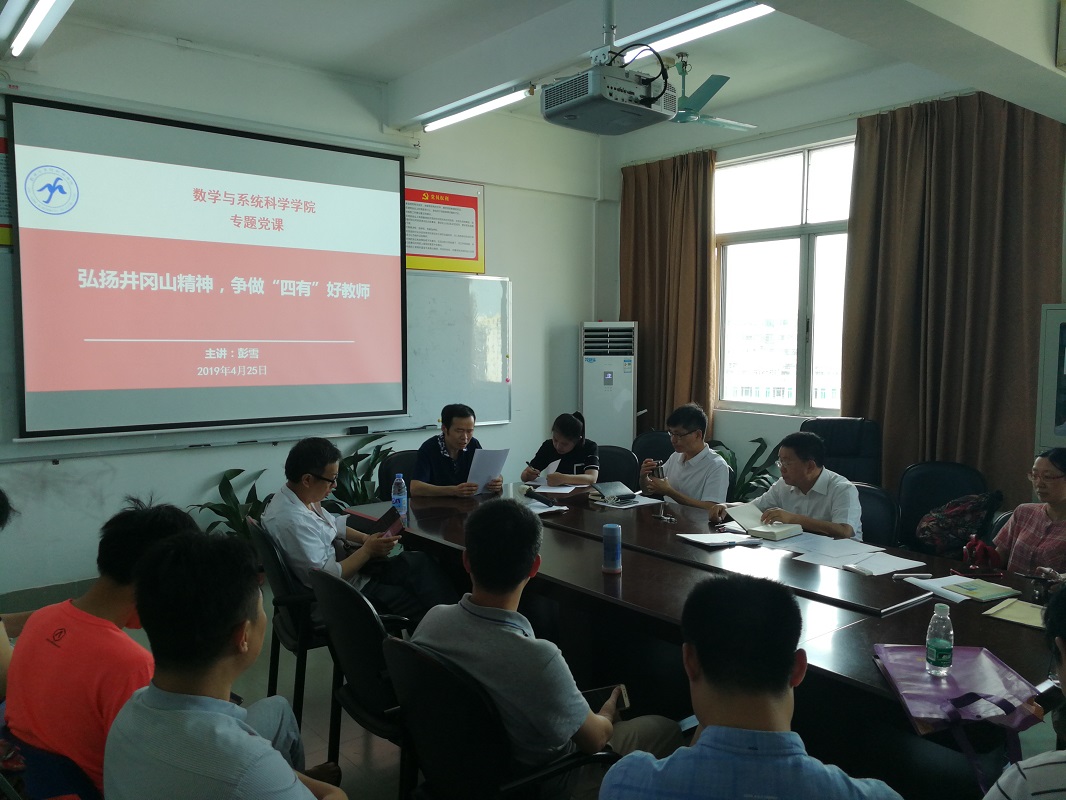 2019年4月25日下午,在校本部一教1211室,美獅貴賓官方網(wǎng)站教工第二黨支部召開全體黨員會(huì)議。會(huì)議內(nèi)容:彭雪書記以《弘揚(yáng)井岡山精神,爭做“四有”好老師》為題,給黨員上專題黨課。