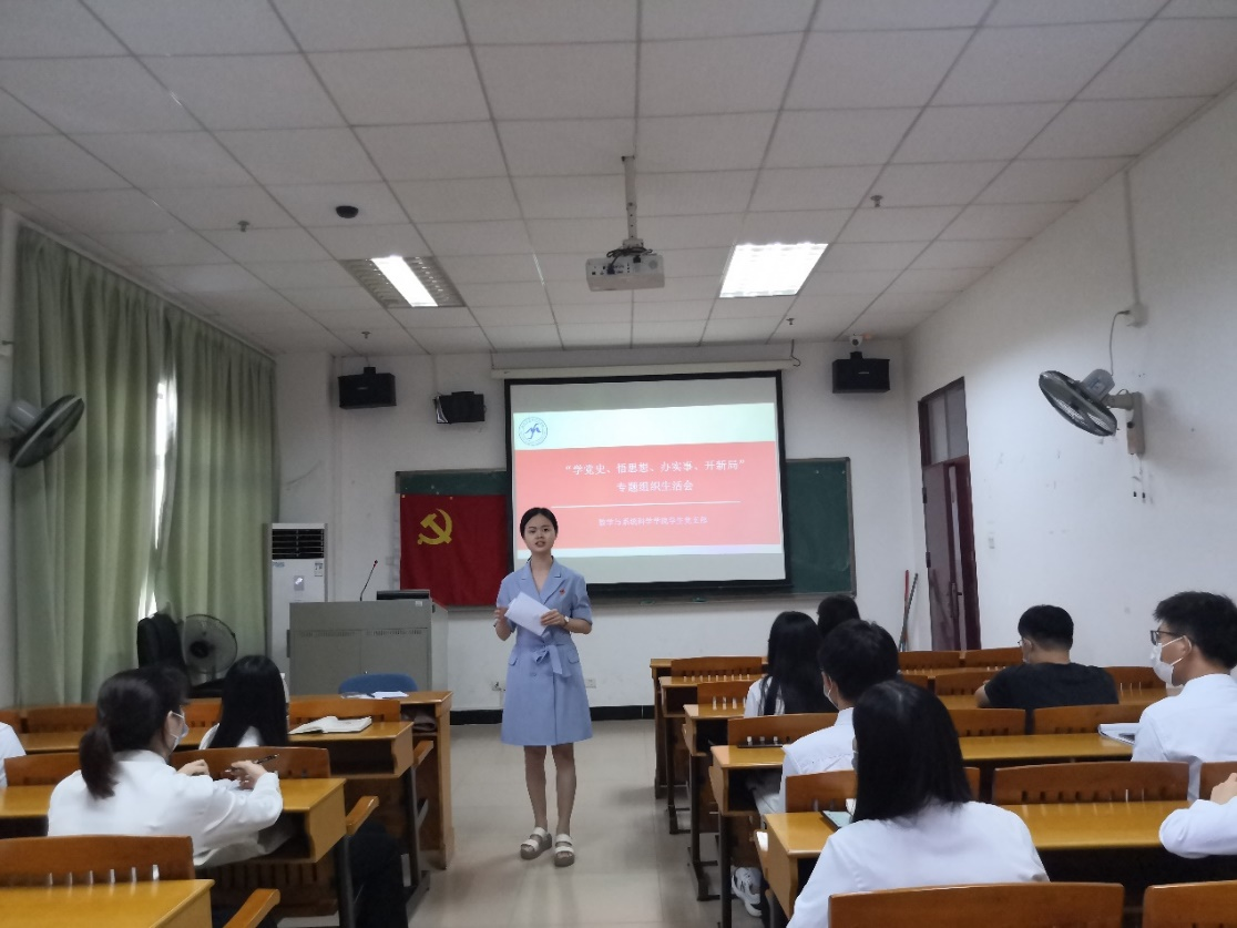 會前,支部組織黨員開展集體朗讀黨史活動,由學生黨員藍美琴、古尚賓、張燕檸、葉芬領(lǐng)讀了《論中國共產(chǎn)黨歷史》、《毛澤東、鄧小平、江澤民、胡錦濤關(guān)于中國共產(chǎn)黨歷史論述摘編》、《習近平新時代中國特色社會主義思想學習問答》、《中國共產(chǎn)黨簡史》等學習材料的部分篇章,認真學習了習近平總書記在黨史學習教育動員大會、慶祝中國共產(chǎn)黨成立100周年大會上的重要講話精神,深刻領(lǐng)悟黨史學習教育的重要意義以及中國共產(chǎn)黨成立100周年對中華民族偉大復興事業(yè)的深遠影響。