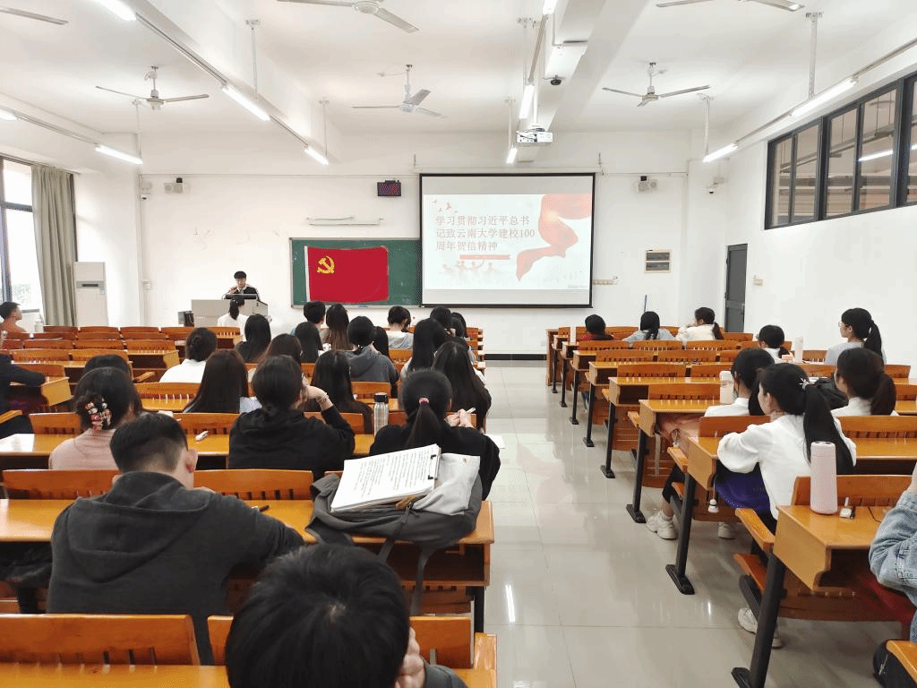 為學(xué)習(xí)貫徹習(xí)近平總書記致云南大學(xué)建校100周年賀信精神,切實(shí)把思想和行動(dòng)統(tǒng)一到賀信精神上來(lái),全面貫徹黨的二十大精神和黨的教育方針。學(xué)生黨支部于4月25日在三教406開展學(xué)習(xí)“習(xí)近平總書記致云南大學(xué)建校100周年賀信”的精神活動(dòng)。學(xué)生黨支部書記王婷婷、全體學(xué)生黨員及入黨積極分子參加了本次學(xué)習(xí)活動(dòng)。